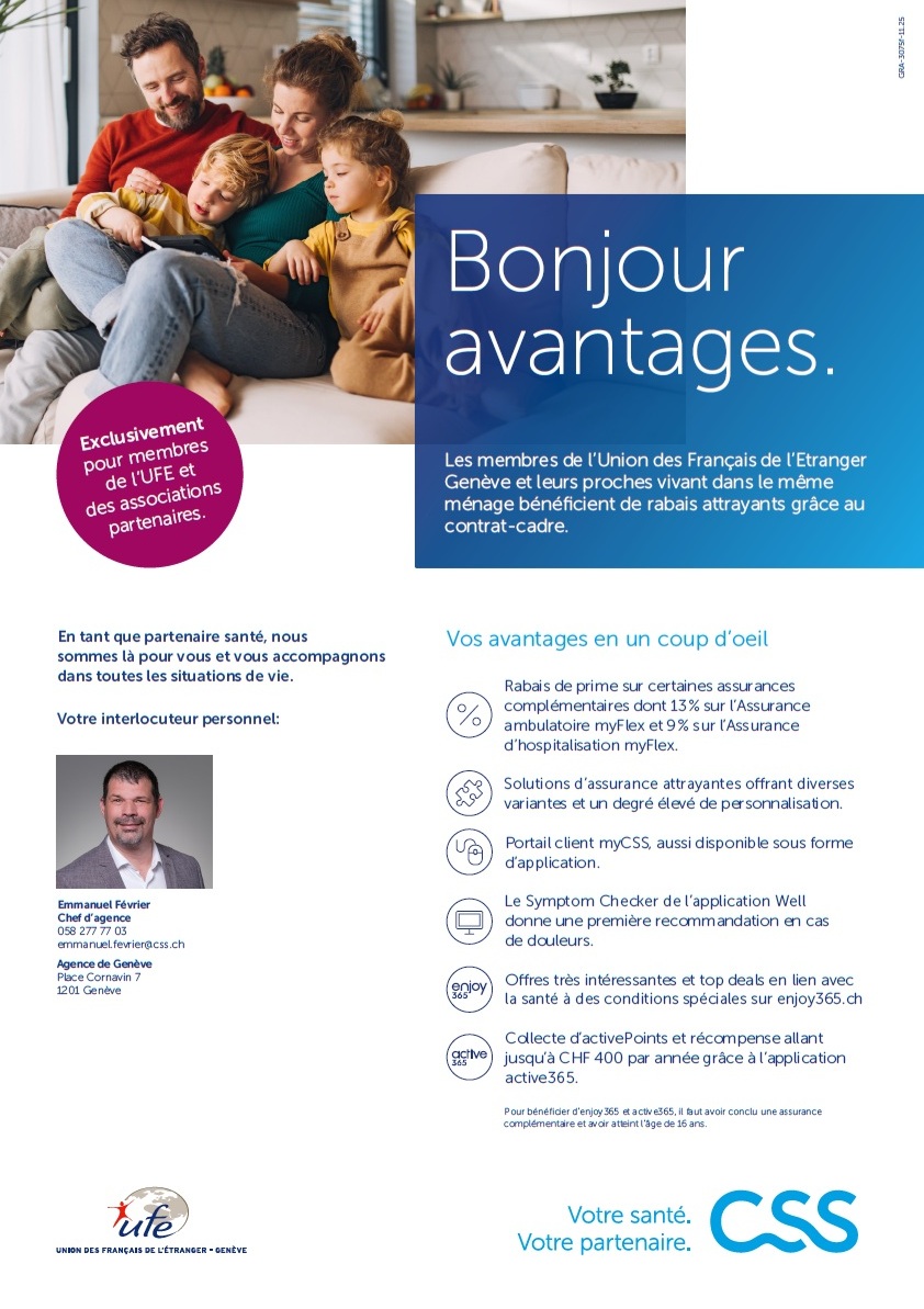 En tant que membre de l’Union des Français de l’étranger (représentation de Genève) vous bénéficiez d’une offre dédiée :